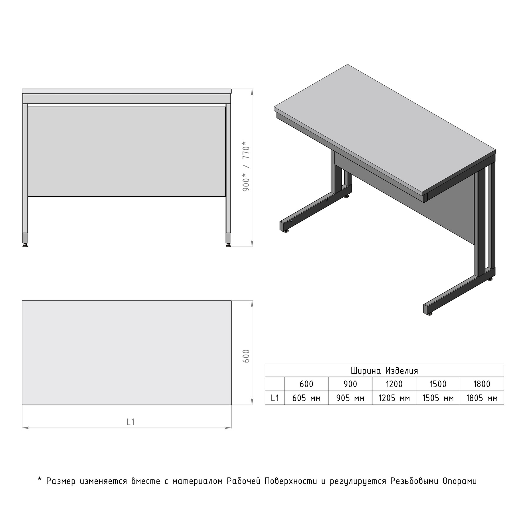 1. Прочный металлический каркас с полимерным покрытием серого цвета; регулируемые опоры 0-30 мм;