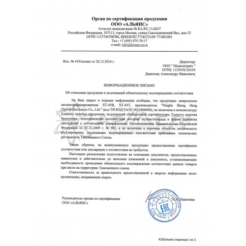 Оборудование лабораторное: микроскоп, модель XT-45Т, 10070100513, Лабораторное оборудование