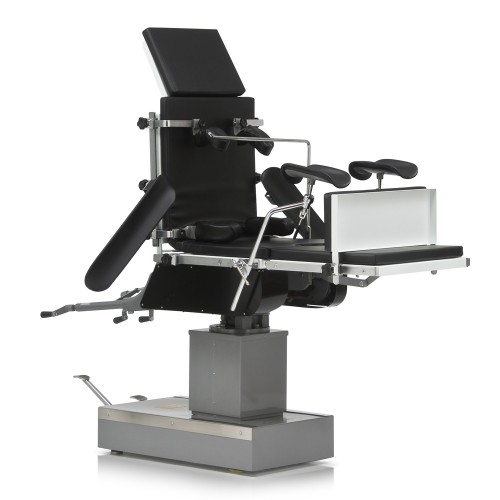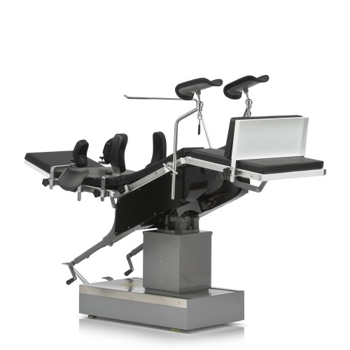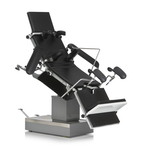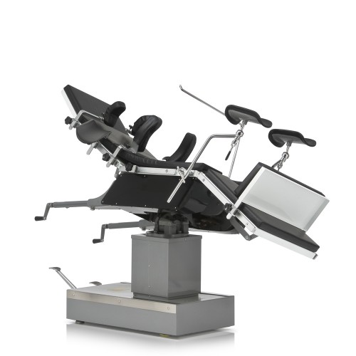 Стол оснащен возможностью регулировки положения Тренделенбург, АнтиТренделенбург, угла наклона ложа влево и вправо.