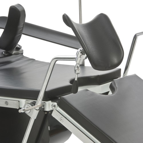 Для максимального удобства пациента спинная секция стола оснащена двумя съемными, регулируемыми плечевыми опорами и опорами для рук.