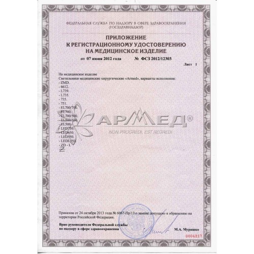 Светильник медицинский хирургический, 100203007, Медицинское оборудование и сопутствующие товары
