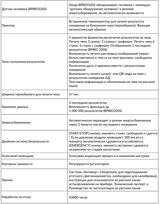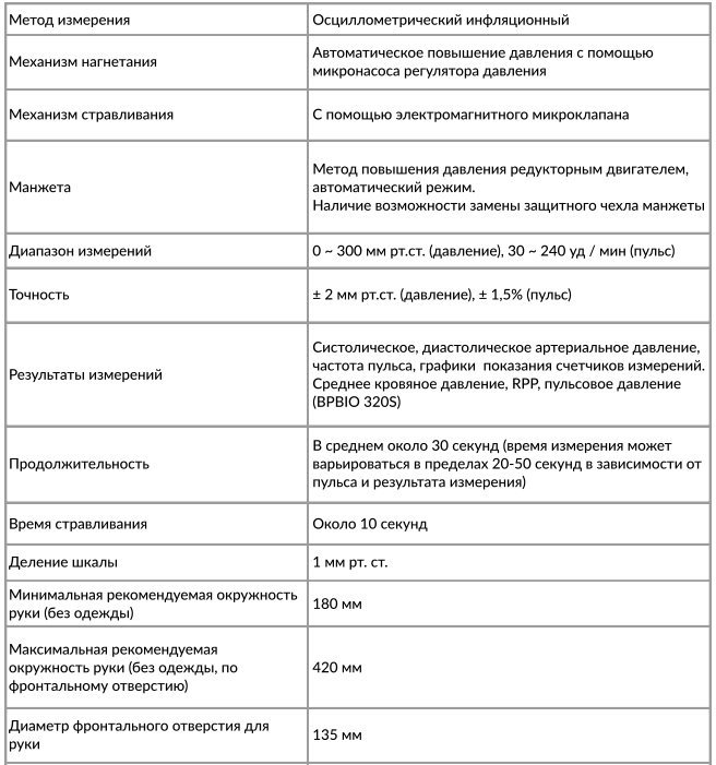 BPBIO320/BPBIO320S - полностью автоматический осциллометрический монитор артериального давления. Определяет систолическое, диастолическое давление, частоту сердечных сокращений, пульсовую волну, присутствует индикация о нарушениях сердечного ритма.