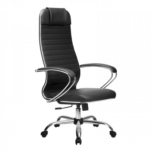 Спинка: высокая с мягким подголовником, черное полимерное покрытие каркаса;