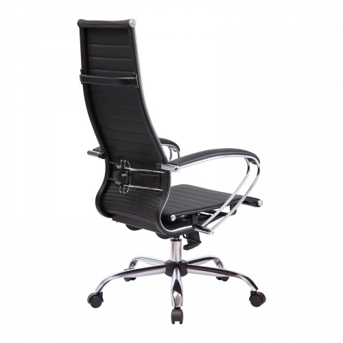 Спинка:  высокая,  черное полимерное покрытие каркаса с хромированным молдингом, ширина 475 мм     ;