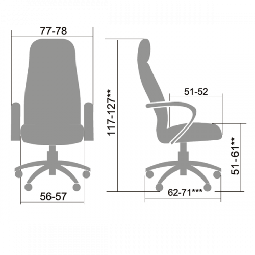 **Высота сиденья в верхнем и нижнем положении может быть изменена, в зависимости от модели применяемого газ-лифта.