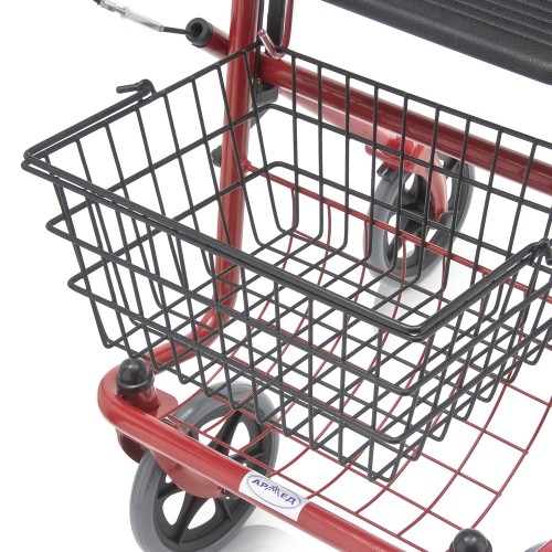 Ролляторы оснащены мягким сиденьем из искусственной кожи и вместительной корзиной для личных вещей.