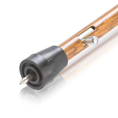 Высота трости регулируется надежным кнопочным фиксатором.
